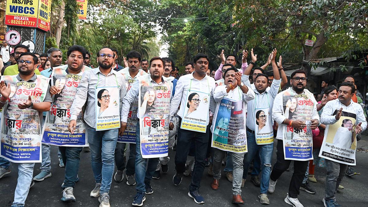 टीएमसी टीचर सेल के सदस्य कोलकाता में जदवपुर विश्वविद्यालय की घटना पर एक विरोध रैली करते हैं। फ़ाइल | फोटो क्रेडिट: एनी