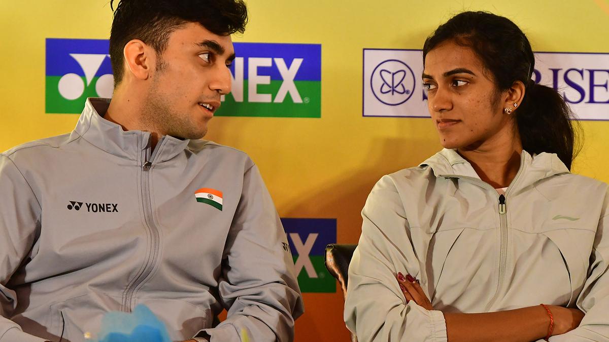 भारतीय बैडमिंटन खिलाड़ी लक्ष्य सेन और पीवी सिंधु। | फोटो साभार: शिव कुमार पुष्पाकर